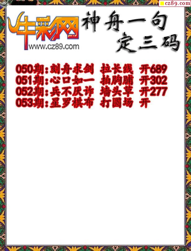 > 福彩3D2026053期神舟一句定三码字图谜